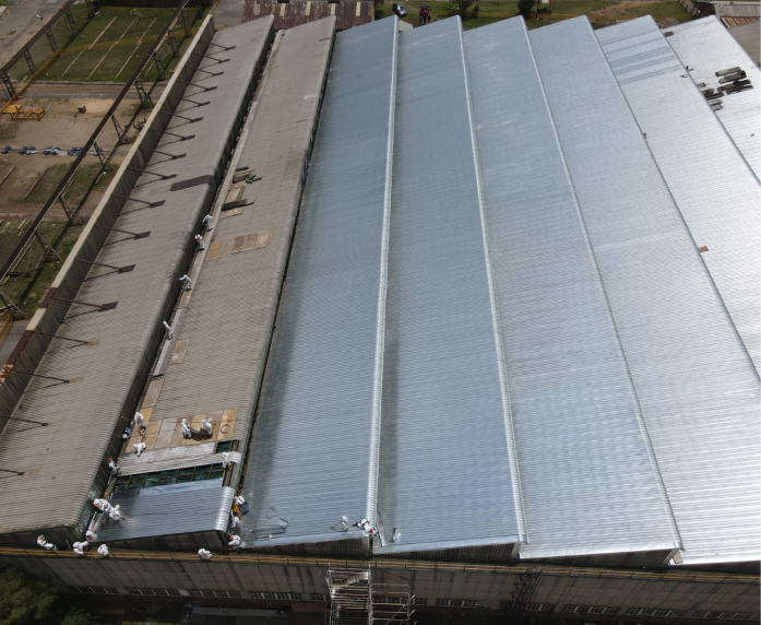 When coverings are at end of life or corrosion is advanced, we remove and replace the roof skin with modern profiles and accessories. Turn key projects.